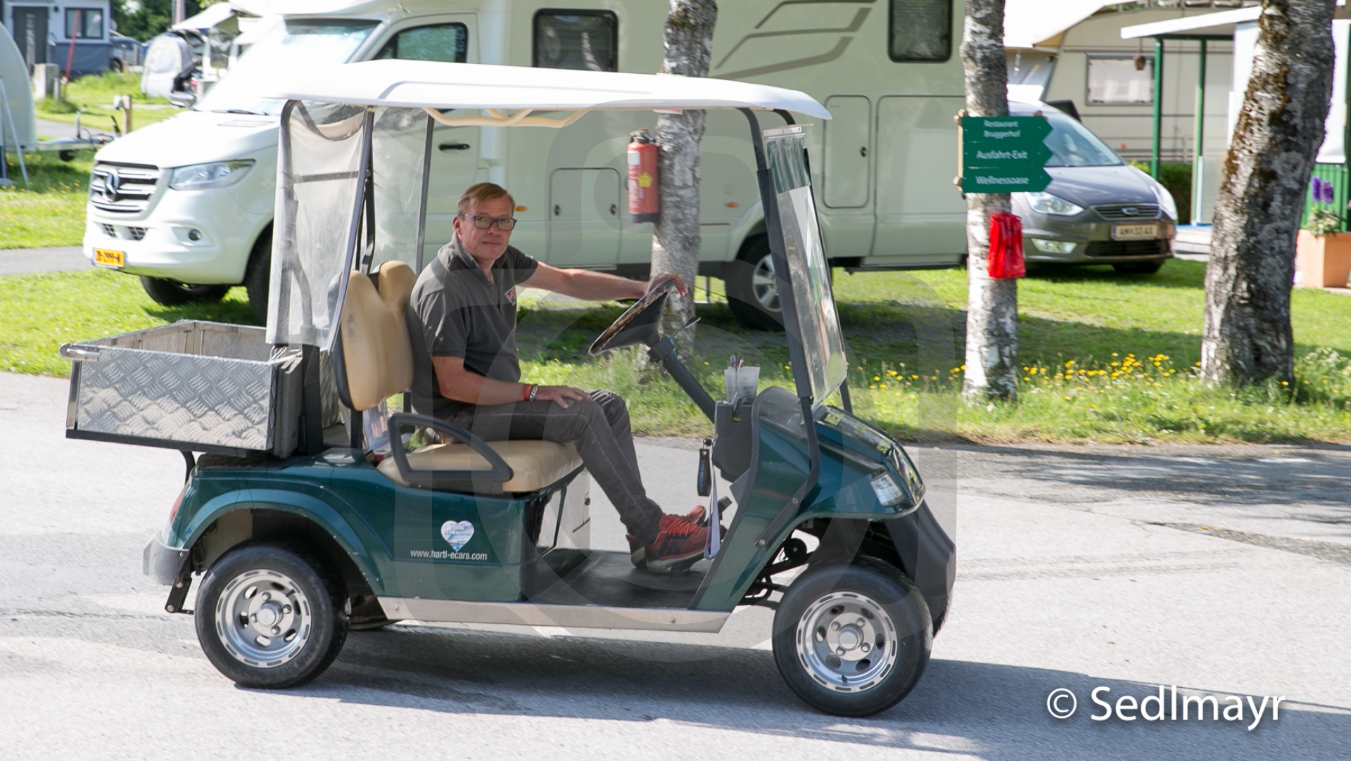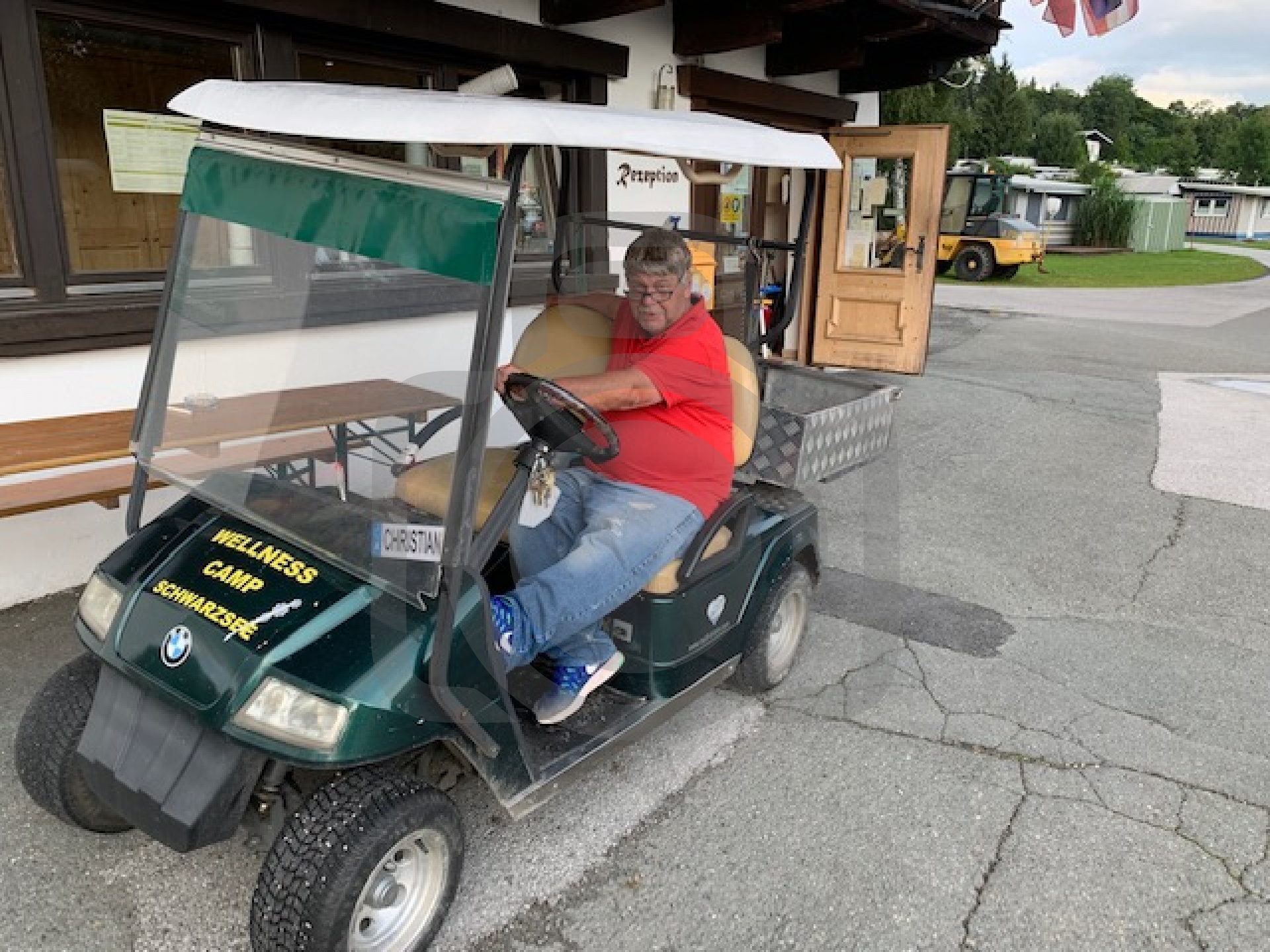 An der Rezeption empfangen Sie Christian und Rene. Die beiden sind immer gut gelaunt. Mit ihren Golfwagen begleiten Sie die Gäste zum Standplatz und sind auch beim Stromanschluss behilflich.